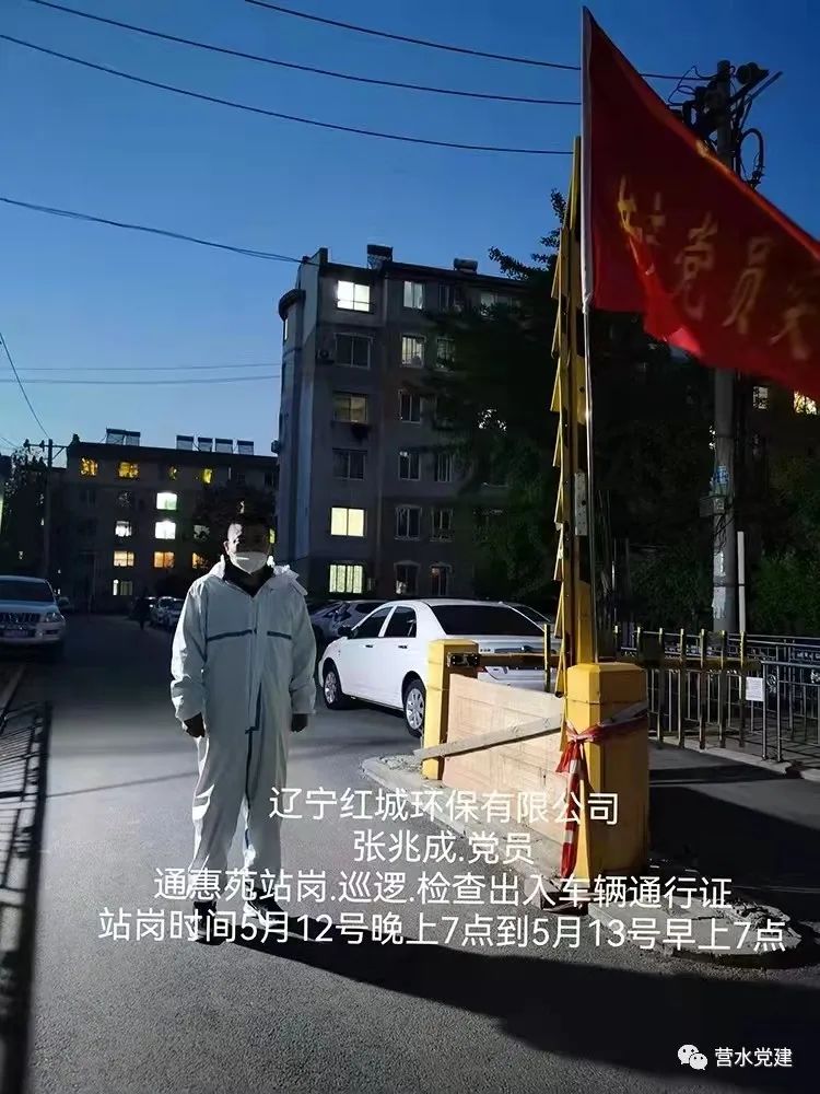 遼寧洪城環(huán)保有限公司黨支部張兆成負責通惠苑南門夜間站崗執(zhí)勤,每天工作10多個小時。5月14號早上,他站崗執(zhí)勤結束剛回到家中,便接到社區(qū)電話,需要挨家挨戶給居民送核酸檢測盒,他顧不上休息,立即穿上防護服沖進一線,從每一個單元一樓開始敲門一直敲到6樓,發(fā)放結束后他已是滿身汗水,腰酸腿疼,坐在地下休息半天才起來。其實他家中有兩個年幼的孩子,尤其是老二還不滿兩周歲,正需要人照看,他把兩個孩子都留給妻子一人照顧,舍小家為大家,用大愛和奉獻,譜寫了一曲動人的抗疫贊歌。