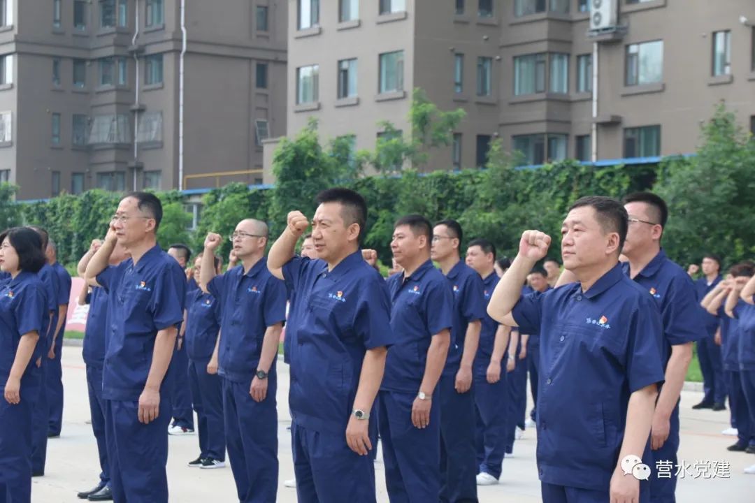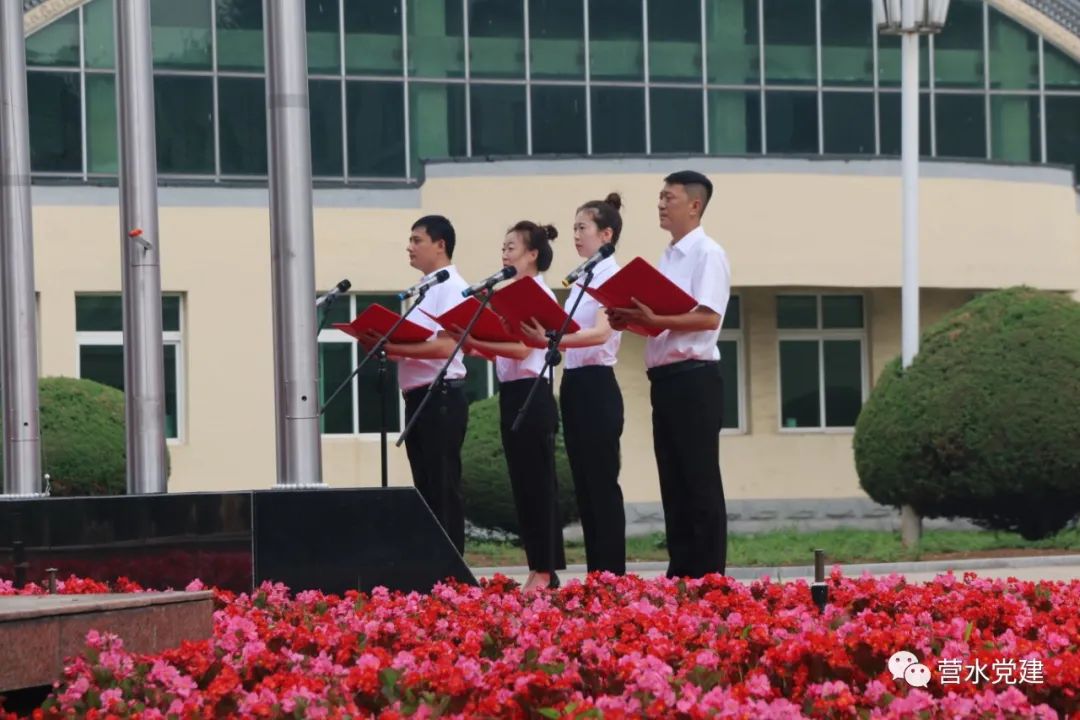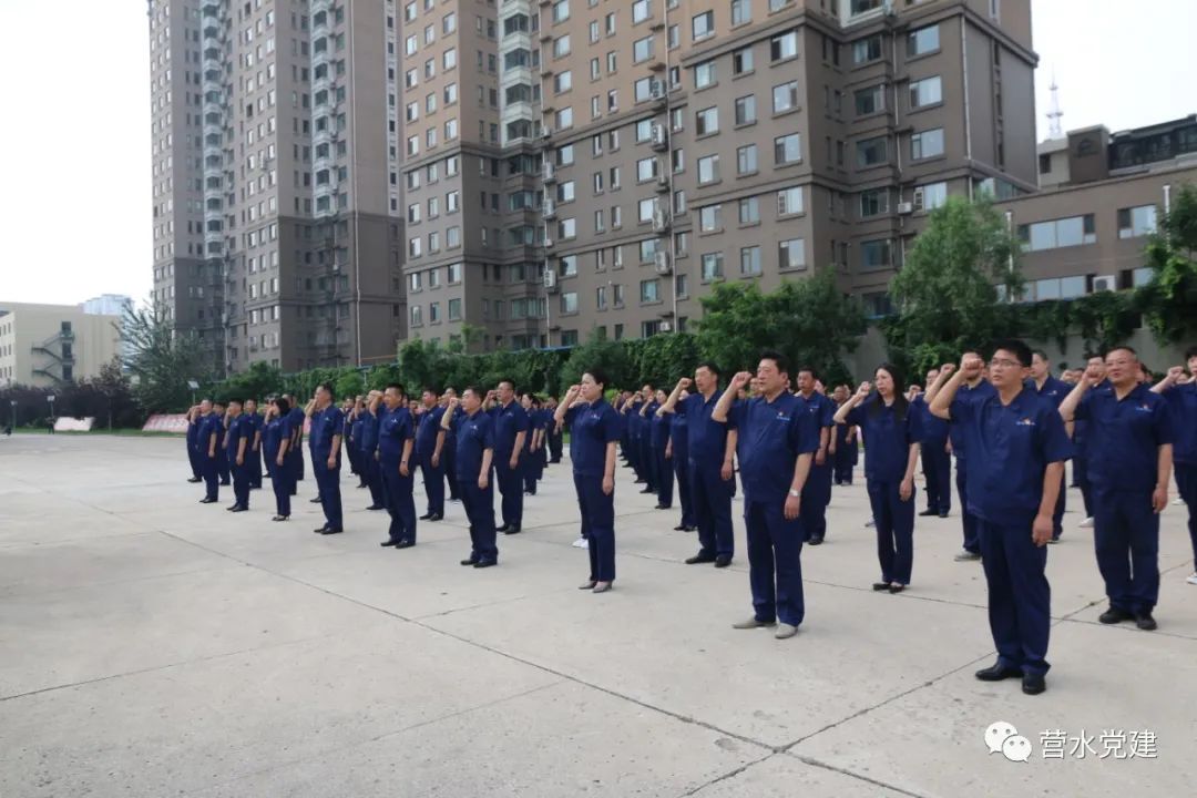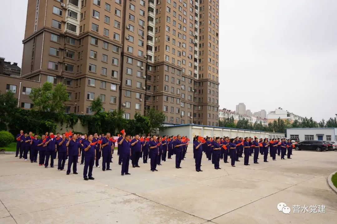 仰望冉冉升起的五星紅旗,心潮澎湃的水務(wù)人用真情歌頌黨,把贊美獻(xiàn)給黨,將共同心聲融入在獻(xiàn)詞中。