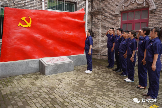 黨員同志們來到紀念館宣誓廣場進行宣誓,全體黨員面向黨旗,舉起右拳,莊嚴宣誓。