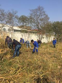 第五水廠是水務(wù)集團(tuán)較大的水廠之一,主要承擔(dān)西部工業(yè)水的運(yùn)行輸送工作。因地形特殊,清水池綠化帶、林木周邊、防護(hù)電網(wǎng)等許多位置不適合機(jī)械除草,約有4萬(wàn)平方米的雜草需人工處理。10月14日下午13時(shí),水務(wù)集團(tuán)全體班子成員和來(lái)自機(jī)關(guān)部室、基層單位的240余名男職工戴著手套、拿著鐮刀,迅速地投入到事先分配好的20個(gè)勞動(dòng)區(qū)域中開展勞動(dòng)。水廠院內(nèi)地上的雜草以蘆葦和蒿草為主,足有一人多高,已被秋風(fēng)吹得干枯發(fā)黃,不易清除。領(lǐng)導(dǎo)班子成員身先士卒,帶頭示范,鼓舞了志愿者們的志氣,許多志愿者的手上都磨出了水泡或被雜草劃傷,但是大家毫無(wú)怨言,發(fā)揚(yáng)特別能吃苦、特別能戰(zhàn)斗的精神,忍痛堅(jiān)持到了最后。經(jīng)過(guò)全體志愿者的共同努力,經(jīng)過(guò)4小時(shí)連續(xù)奮戰(zhàn),4萬(wàn)平方米的雜草全面清除干凈,同時(shí)對(duì)雜草中的白色垃圾進(jìn)行了集中清理,廠區(qū)環(huán)境衛(wèi)生得到了明顯改善??粗鍧嵭l(wèi)生的水廠,志愿者們的心里洋溢著自豪感和成就感,同時(shí)也享受到了勞動(dòng)的光榮與快樂(lè)。