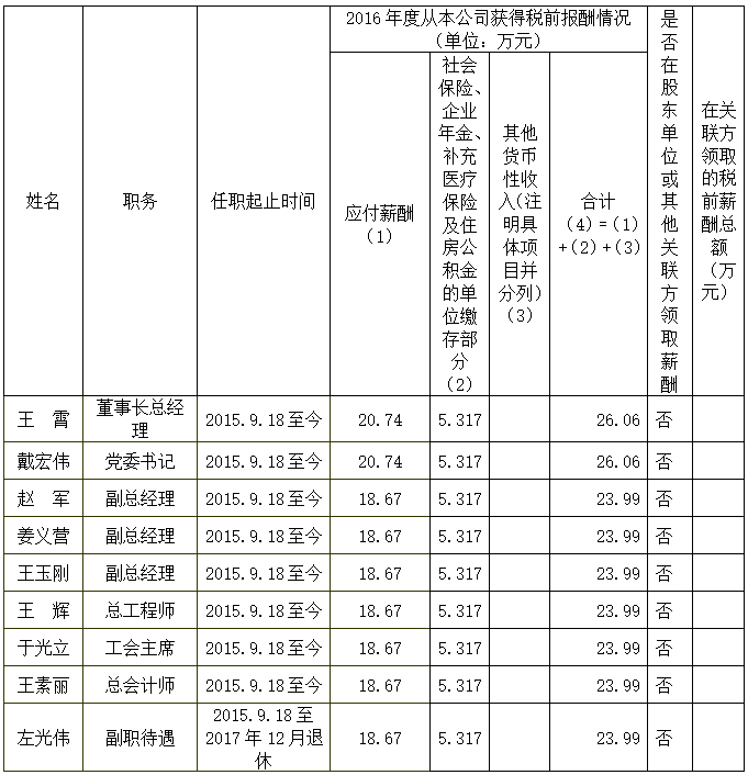1.上表披露薪酬為我公司高級(jí)管理人員2016年度全部應(yīng)發(fā)稅前薪酬。