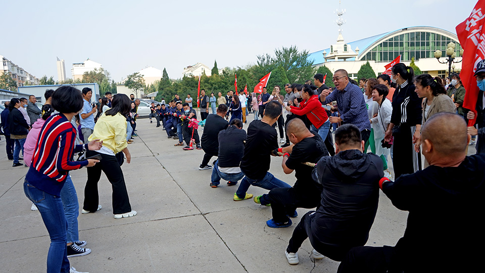 上午8:20分,集團(tuán)公司領(lǐng)導(dǎo)與基層工會(huì)干部職工400余人,集聚于集團(tuán)公司機(jī)關(guān)樓門前,相繼展開了“萬眾一心拔大河”和“五谷豐登”兩項(xiàng)拓展團(tuán)體活動(dòng)。“萬眾一心拔大河”考驗(yàn)的是每名隊(duì)員心往一處想,勁往一處使,形成強(qiáng)大合力進(jìn)而最終實(shí)現(xiàn)團(tuán)隊(duì)目標(biāo)的團(tuán)隊(duì)精神;在“五谷豐登”項(xiàng)目中,隊(duì)員要以積極的心態(tài)、高度的責(zé)任感,齊心協(xié)力做好每一個(gè)環(huán)節(jié)從而達(dá)成既定目標(biāo),培養(yǎng)了團(tuán)隊(duì)隊(duì)員間相互配合的合作精神。在各參賽隊(duì)的努力下,“萬眾一心拔大河”前四名分別是:站前營(yíng)業(yè)分公司、管網(wǎng)運(yùn)維中心、機(jī)關(guān)二分會(huì)、用水監(jiān)察大隊(duì)四個(gè)代表隊(duì)?!拔骞蓉S登”前四名分別是:用水監(jiān)察大隊(duì)、機(jī)關(guān)一分會(huì)、管網(wǎng)運(yùn)維中心、第六凈水廠四個(gè)代表隊(duì)。