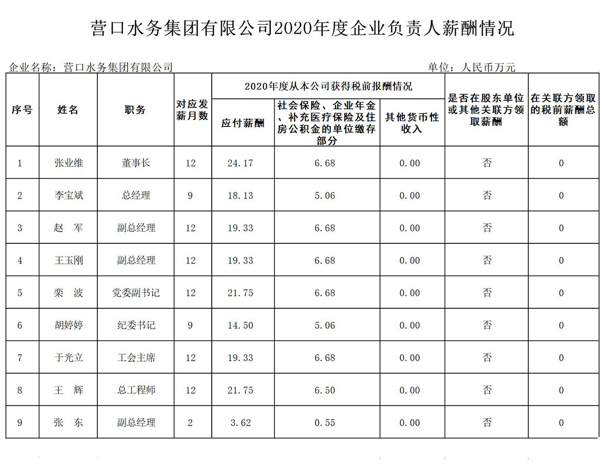 2020年度營口市市屬企業(yè)負(fù)責(zé)人薪酬信息公開表